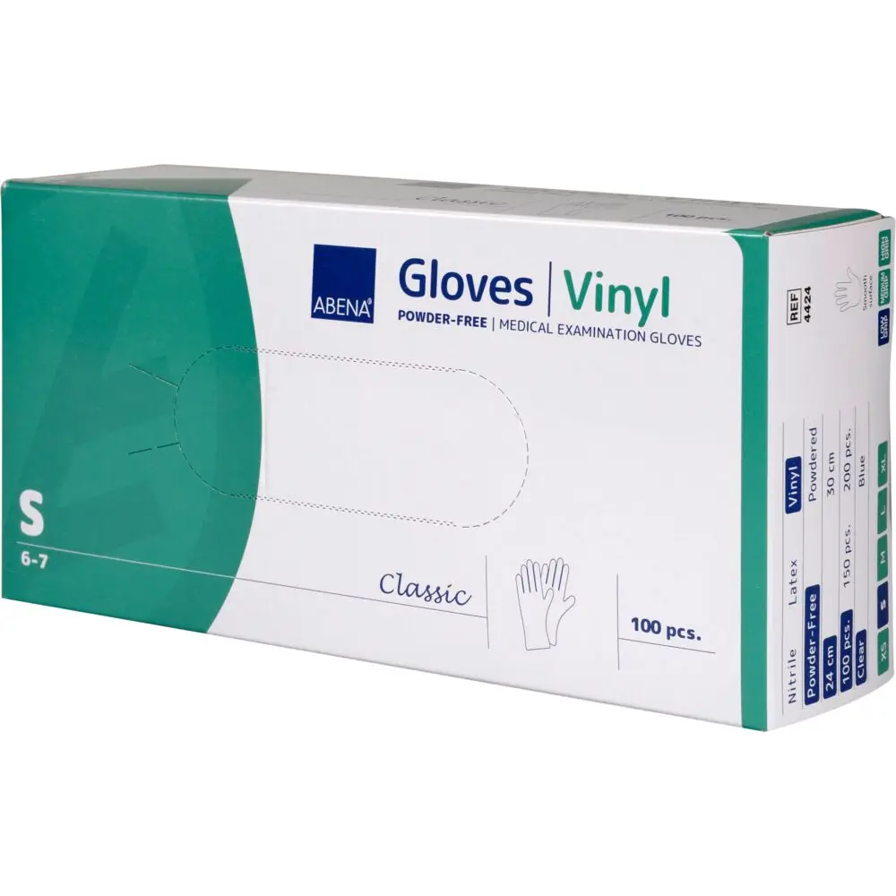 ABENA Classic Undersökningshandske Vinyl Puderfri S – Slät och latexfri engångshandske för hygieniskt arbete