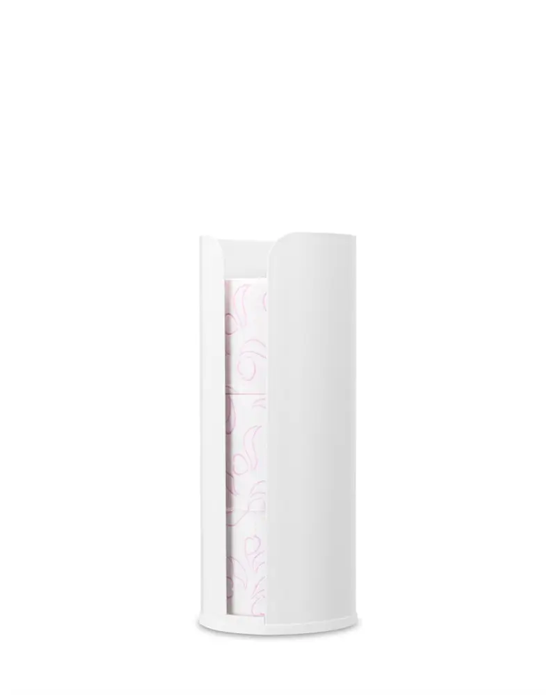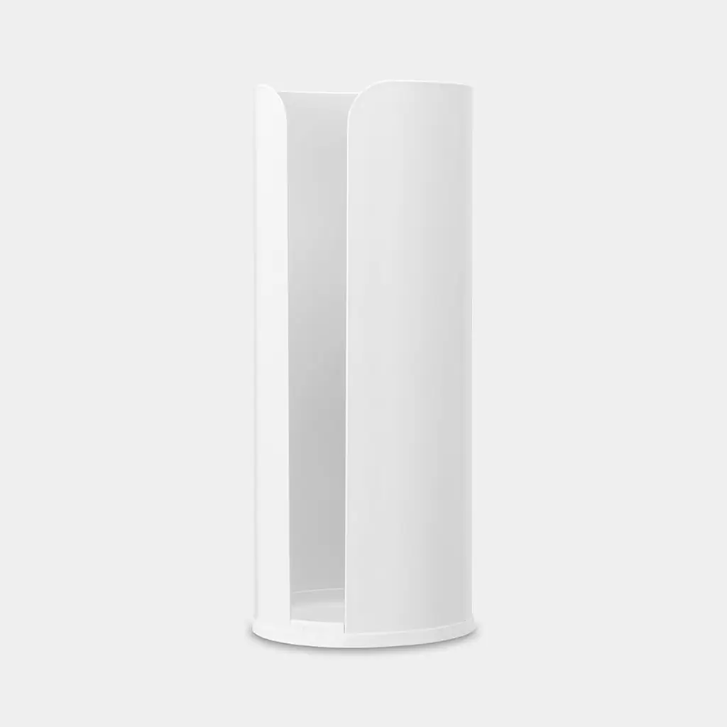 Golvstående toalettpappershållare i stilren vit design med smart förvaring. Brabantia ReNew toalettpappersbehållare är en modern och praktisk toalettpappersdispenser golv som håller ordning i badrummet. Den slutna konstruktionen skyddar rullarna från damm och stänk samtidigt som designen håller dem diskret dolda.