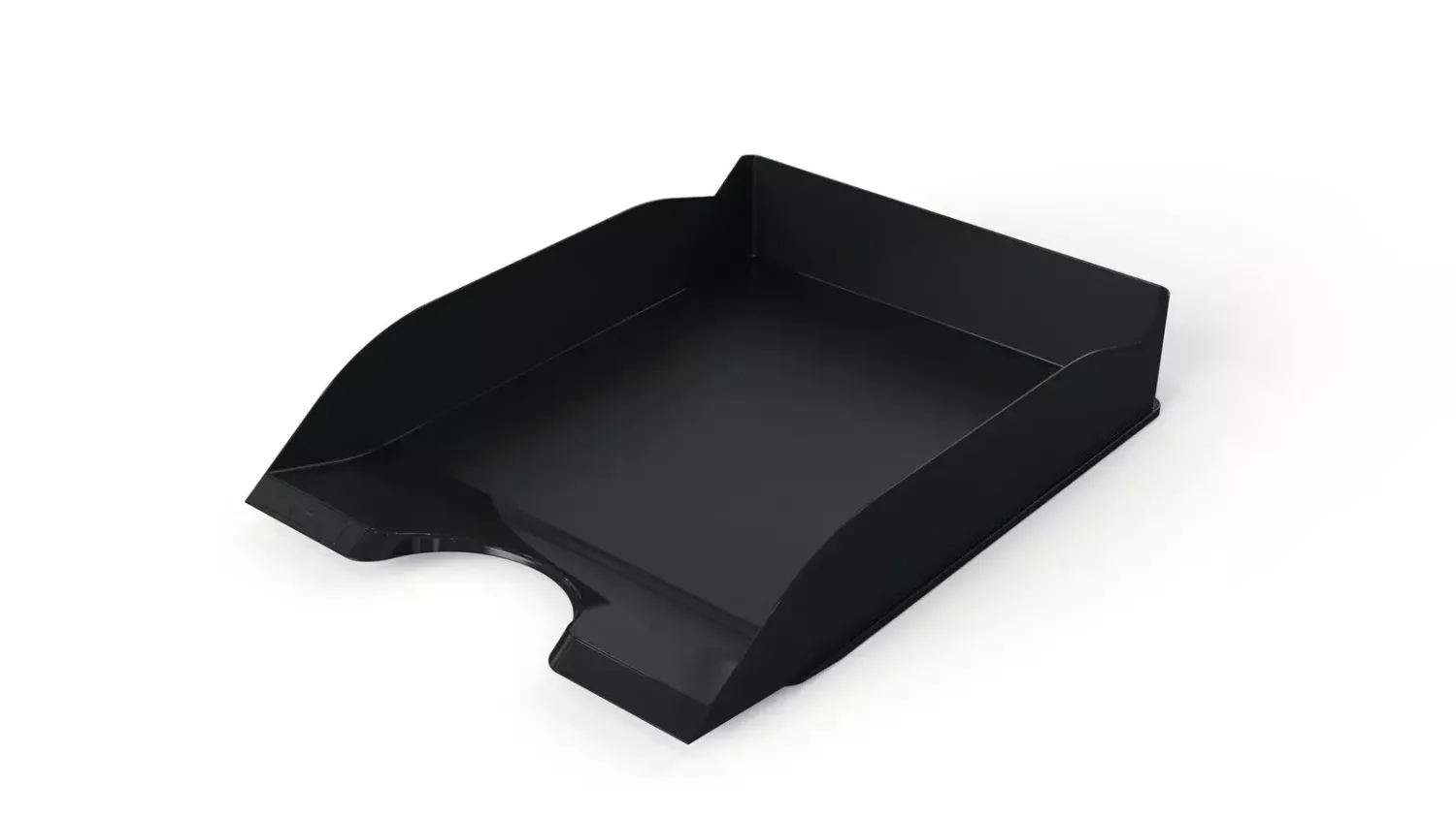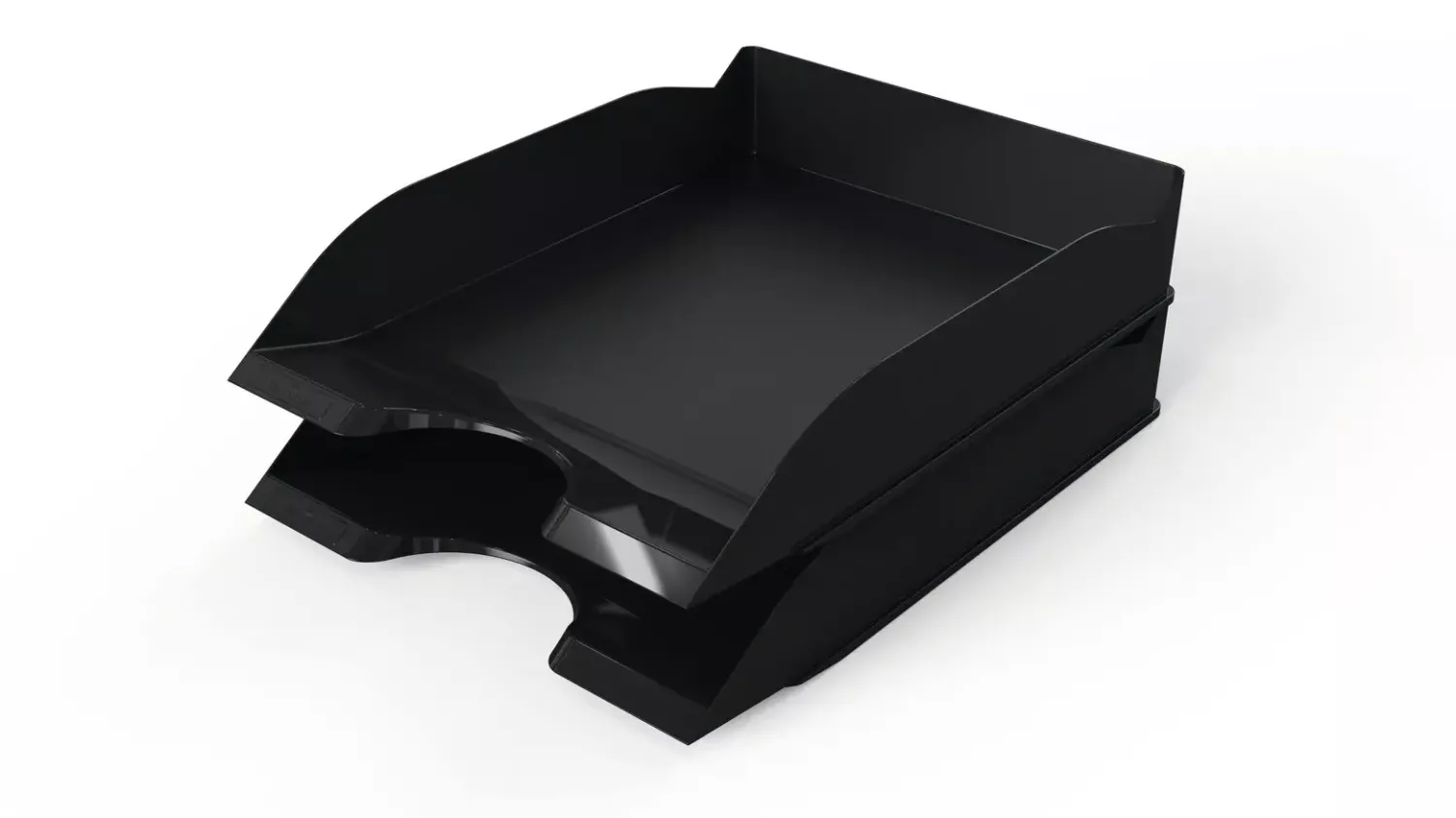 Den lätt uppvinklade framkanten håller dokumenten på plats, medan den utstansade öppningen gör det enkelt att snabbt ta ut papper. Brevkorgen kan användas separat eller staplas på höjden för att skapa en praktisk och platsbesparande dokumentförvaring.