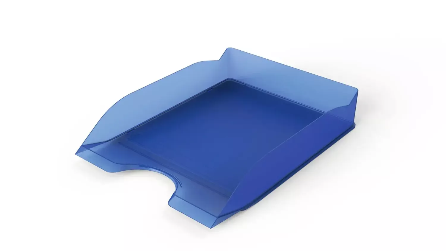 Stapelbar brevkorg i transparent indigoblå design som gör det enkelt att organisera dokument på skrivbordet. Brevkorgen är anpassad för A4 till C4-format och ger snabb åtkomst till papper, post och dokument både på kontoret och i hemmakontoret.
