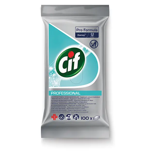 Cif Pro Formula Allrengöringsduk är en förfuktad rengöringsduk som ger ett hygieniskt och skinande rent resultat