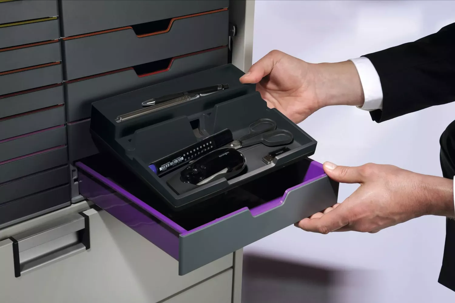 Tillverkad av slitstark ABS-plast och designad för modern och funktionell arbetsplatsorganisation.