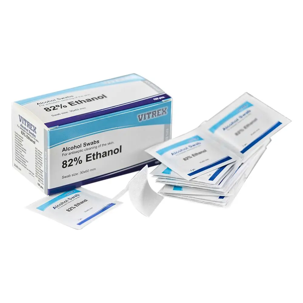 Vitrex injektionsservetter är praktiska och hygieniska engångsservetter för snabb och effektiv rengöring av huden. De är impregnerade med 82 % etanol som effektivt verkar mot bakterier och används främst inför injektioner, provtagning eller annan antiseptisk huddesinfektion. Servetterna är individuellt förpackade för hög hygien och enkel användning.