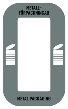 Denna källsorteringsdekal för Metallförpackningar är framtagen för att ge tydlig och lättförståelig märkning av källsorteringsstationer