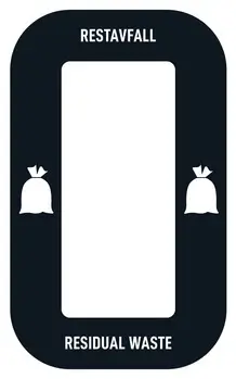 Denna källsorteringsdekal för Restavfall är framtagen för att ge tydlig och lättförståelig märkning av källsorteringsstationer