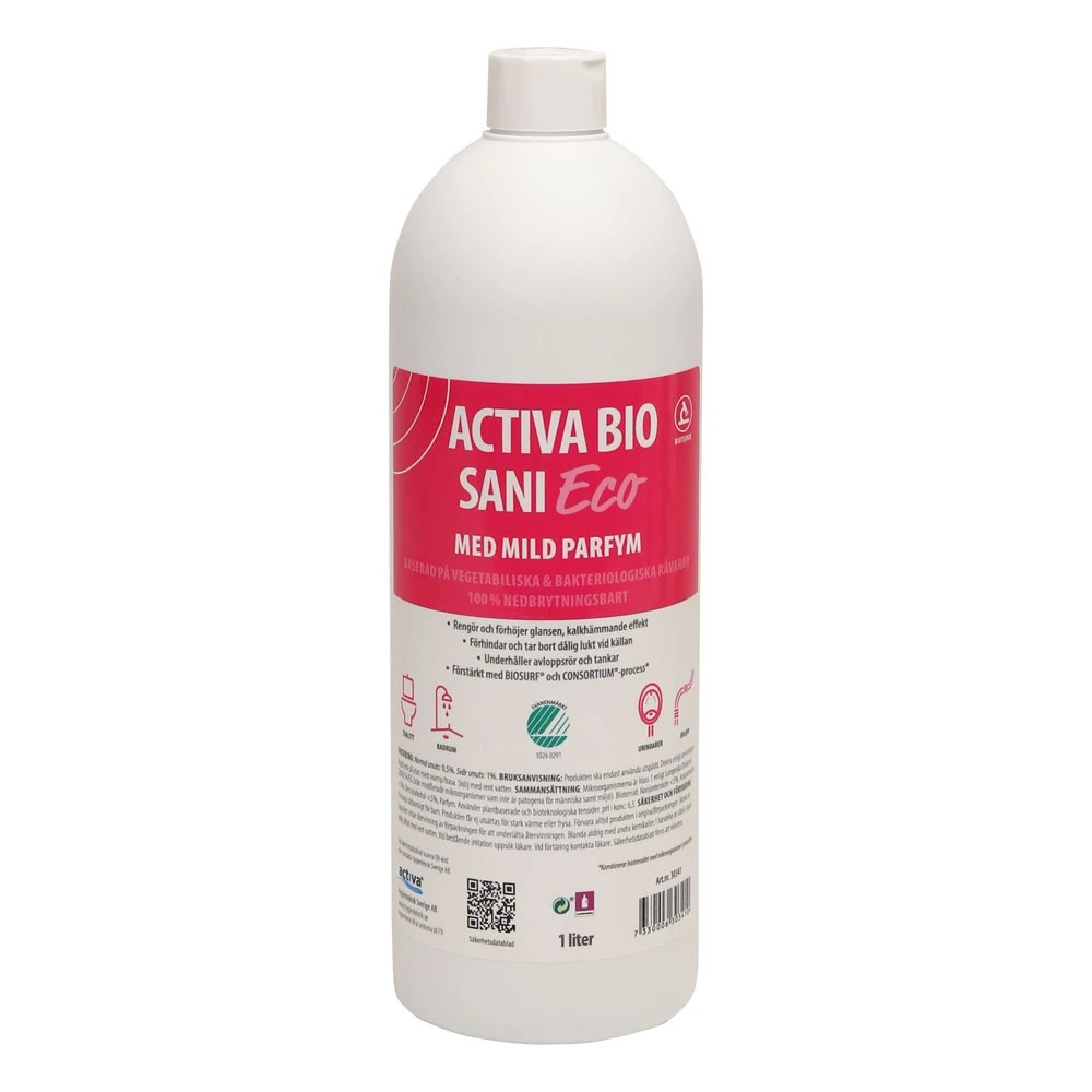 Efter avsköljning används Activa Bio Sani (30341) som ger en hygienisk rengöring, tar bort dålig lukt och hjälper till att hålla avlopp rent.