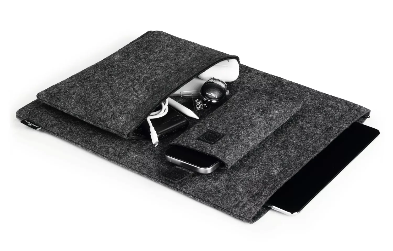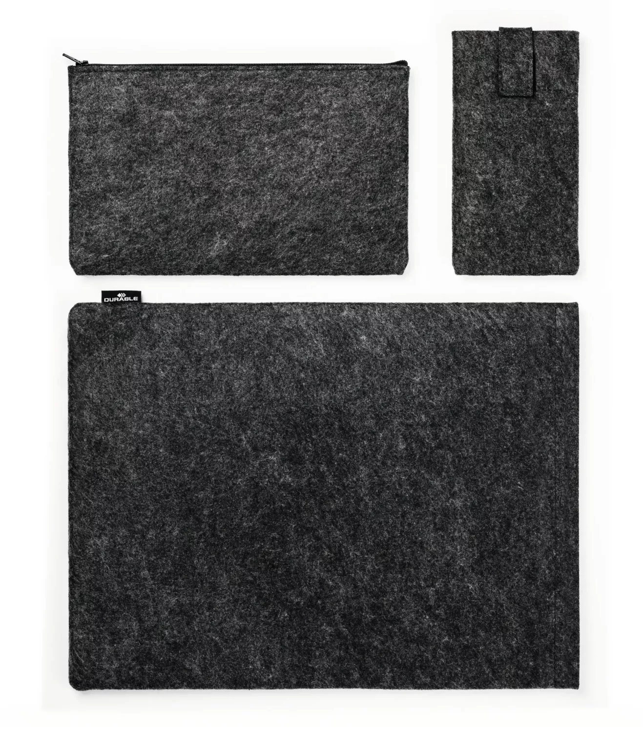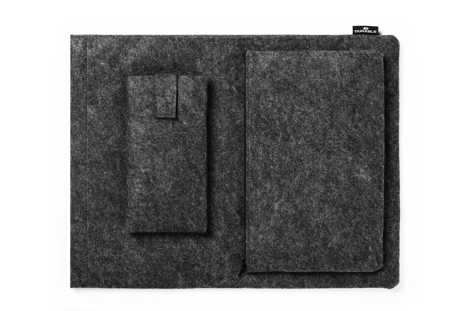 Skyddande och stilrent laptopfodral från Durable i serien EFFECT. Detta praktiska MultiBag-set innehåller ett laptopfodral, ett tillbehörsetui och ett mobilfodral – alla tillverkade av 60 % återvunnen PET-filt. Perfekt för dig som vill skydda din laptop och samtidigt hålla ordning på tillbehör när du är på språng.