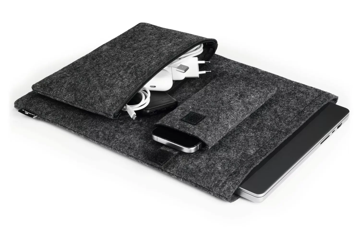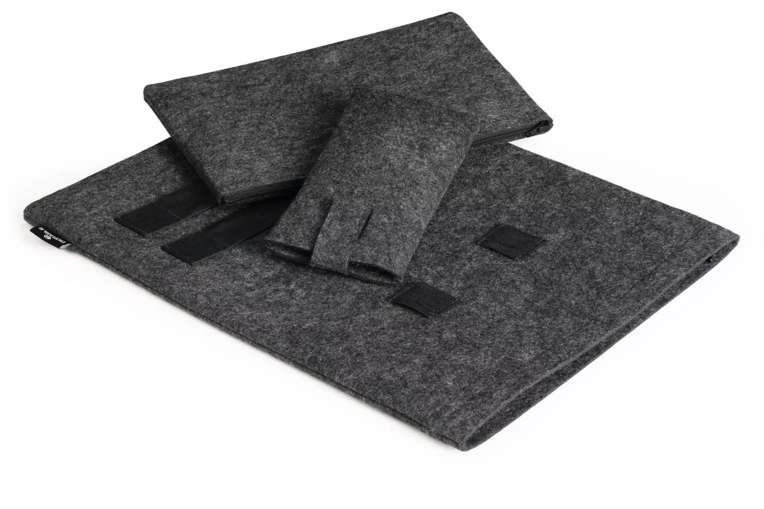 Laptopfodralet skyddar datorn mot repor och stötar och stängs med en högkvalitativ dragkedja. Tillbehörsetuiet och mobilfodralet kan användas separat eller fästas på laptopfodralet med praktiska tryckknappar så att allt blir en samlad enhet.