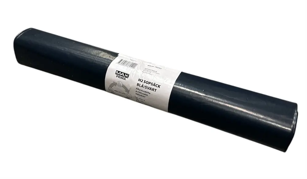 MAX Prima H2 Sopsäck 160L Blå/Svart är en kraftig och pålitlig sopsäck, designad för effektiv hantering av större mängder avfall. Den tvåfärgade designen underlättar sortering och ger tydlig visuell identifiering av innehållet.