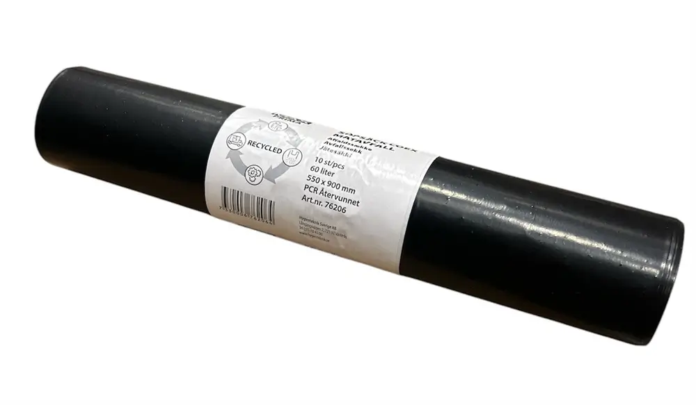Slitstark och tålig sopsäck framtagen av 100 % återvunnen plast (PCR), anpassad för hantering av stora avfallsvolymer