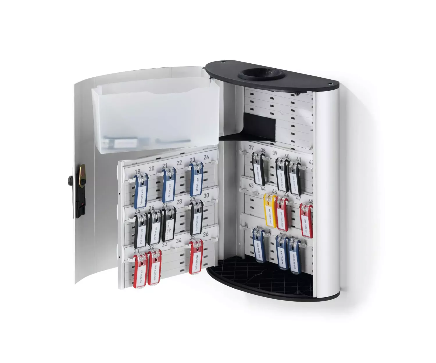 Skåpet har en överskådlig innehållsförteckning på insidan av dörren för enkel administration av nycklar