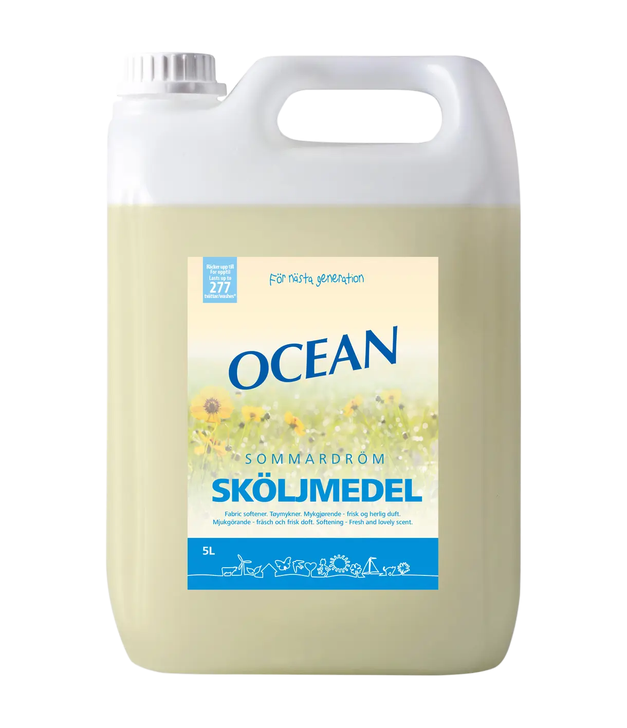 Ocean Sköljmedel Sommardröm 5L är ett effektivt och väldoftande mjukmedel som gör din tvätt mjuk, smidig och lätt att hantera. Den fräscha sommardoften ger en långvarig känsla av nytvättat och fräscht, samtidigt som textilierna blir behagliga mot huden.