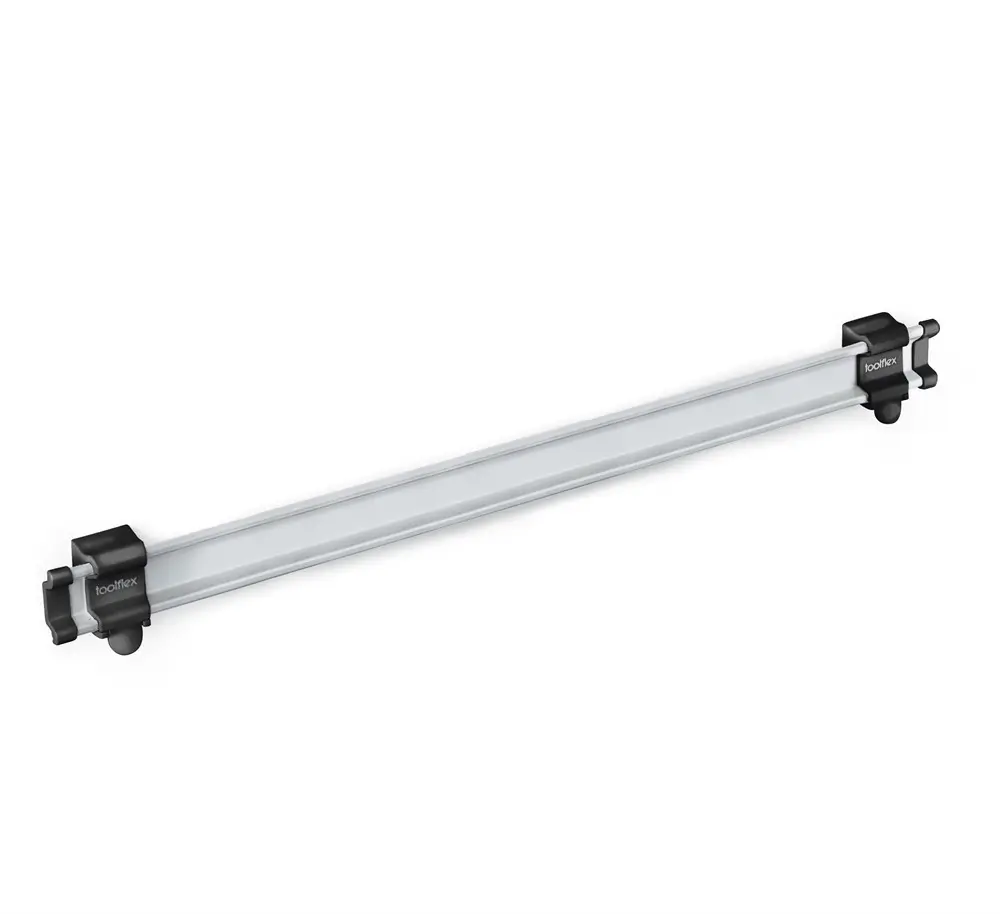 Toolflex ONE skena är en separat aluminiumskena på 54 cm för dig som vill specialanpassa din Toolflex-enhet. Skenan kan användas för att förlänga en befintlig skena eller för att skapa en helt egen kombination av hållare och krokar – exakt efter dina behov.
