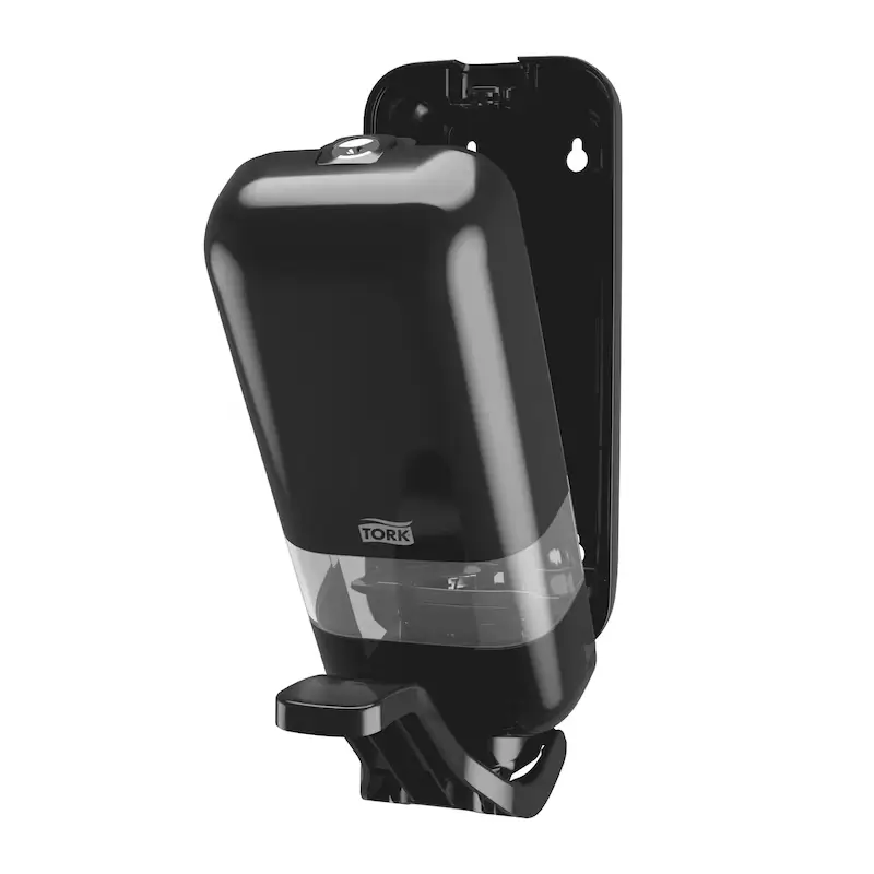Tork Dispenser Tvål och Handsprit med Armbågsfattning S4 Svart är utvecklad för miljöer med höga hygienkrav. Armbågsfattningen minskar risken för smittspridning samtidigt som dispensern erbjuder effektiv dosering och låg förbrukning. De fabriksförseglade refillflaskorna säkerställer hög hygien och snabb påfyllning, vilket sparar tid för personalen.