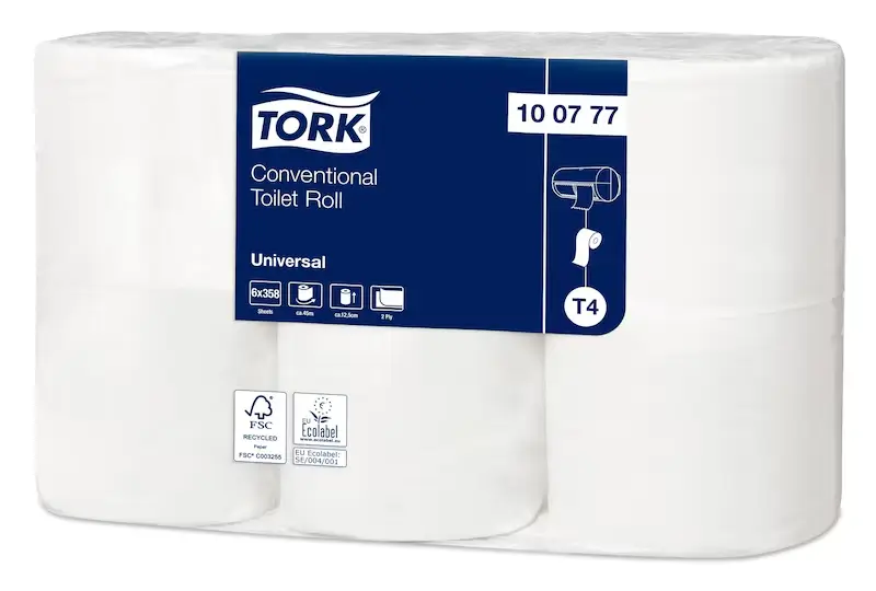 Tork Extra Långt Toalettpapper Universal är ett funktionellt och kostnadseffektivt val för toalettutrymmen med låg till medelhög besöksfrekvens