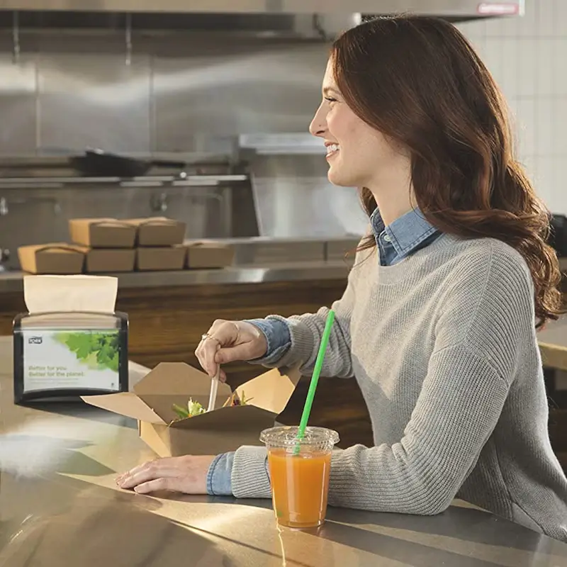 Tork Xpressnap® Natur Dispenserservett N4 är ett hållbart och kostnadseffektivt val för självservicerestauranger med hög genomströmning