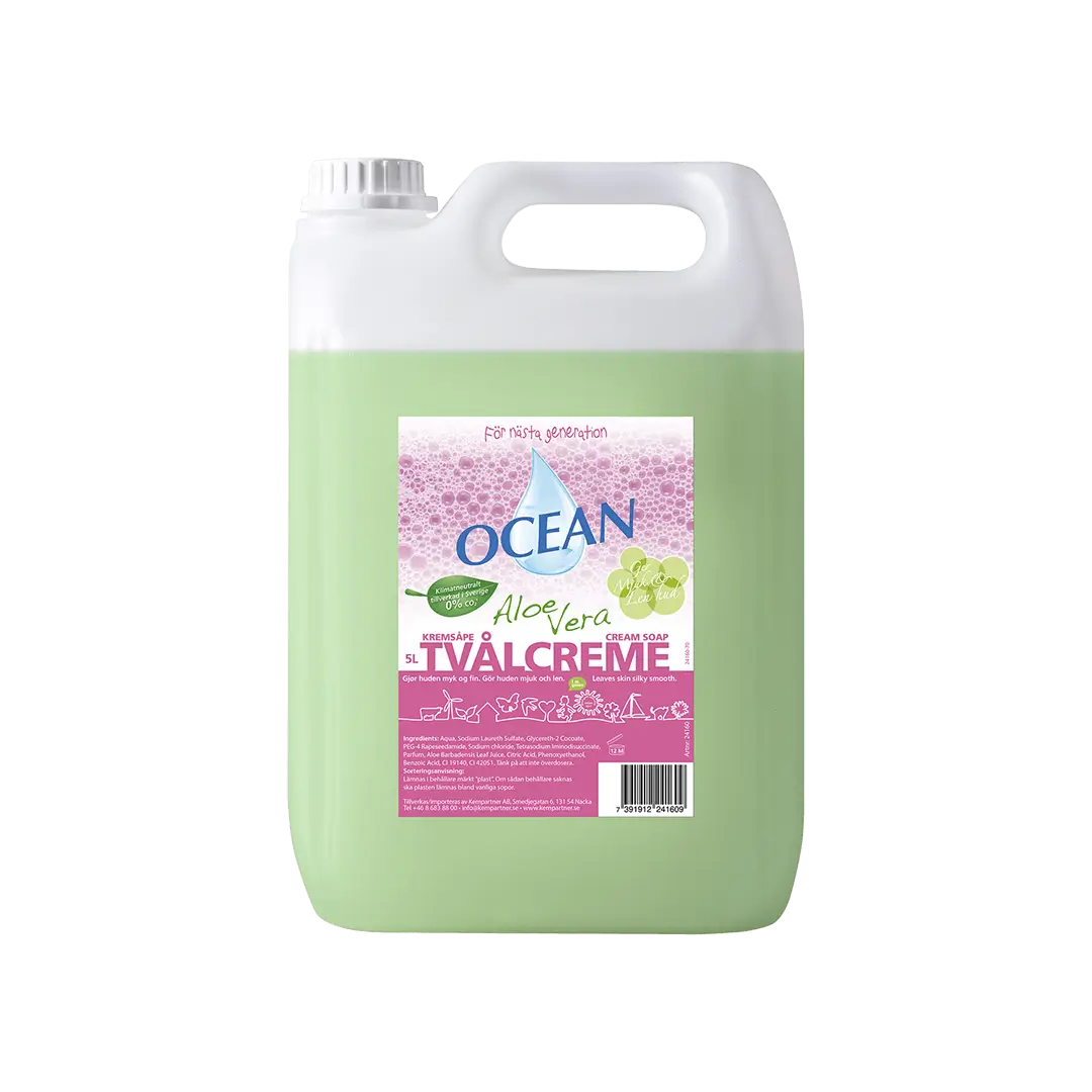 OCEAN tvålcreme Aloe Vera är mjukt rengörande och innehåller fuktbevarande ämnen som förhindrar uttorkning av känslig hud. Den milda, renande och väldoftande tvålen gör din hud mjuk och smidig.
