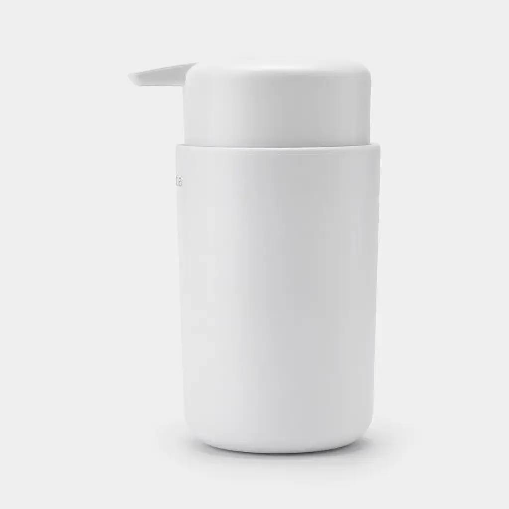 Stilren och praktisk tvålpump från Brabantia i klassisk vit design som passar perfekt i både kök och badrum. Den cylinderformade formen ger ett tidlöst och minimalistiskt uttryck samtidigt som konstruktionen är framtagen för smidig användning i vardagen.